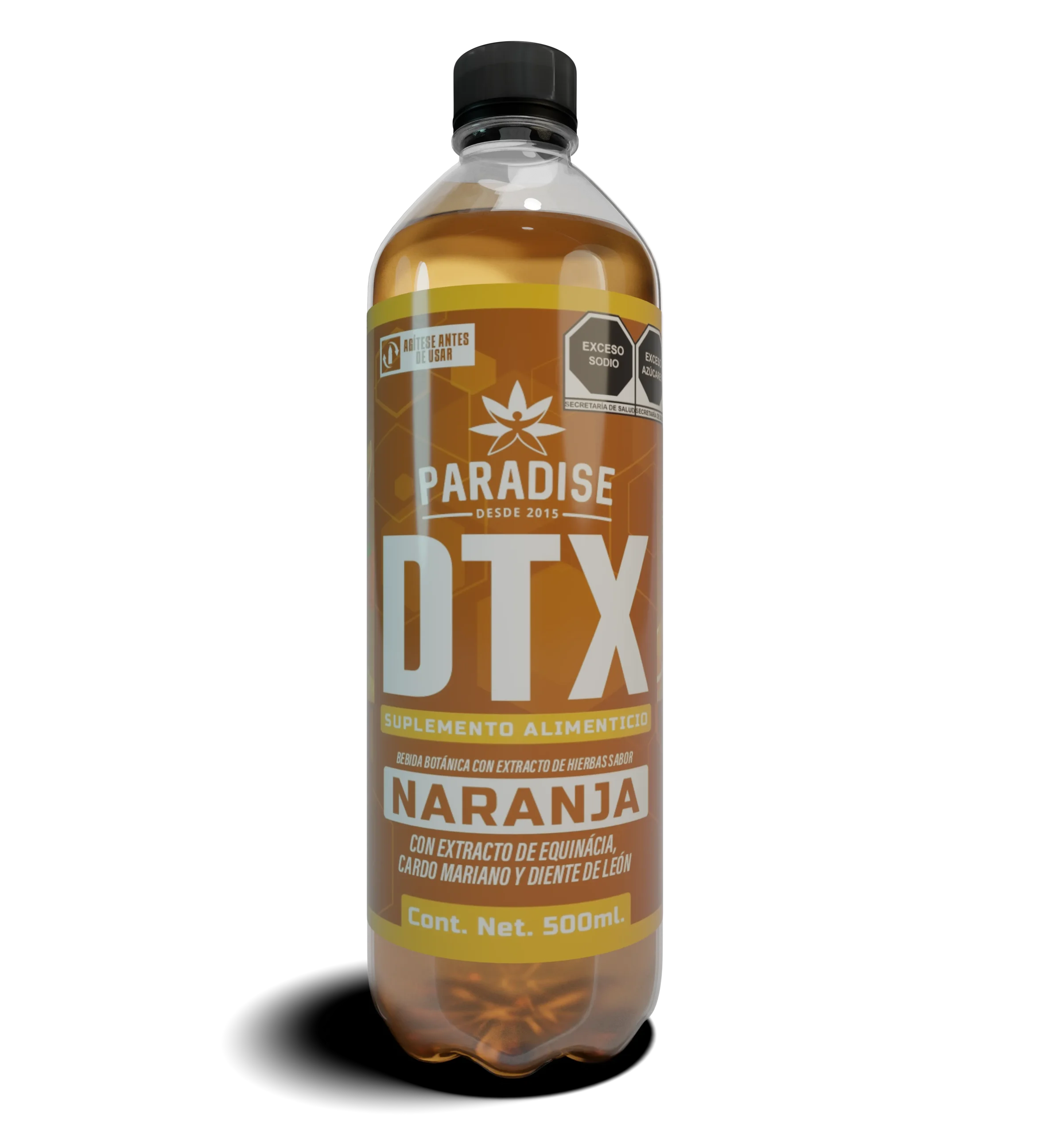 Equilibrio y Vitalidad Natural. DTX Suplemento Alimenticio – Sabor Naranja es una bebida botánica con un refrescante sabor a naranja, formulada con una mezcla única de extractos de hierbas como equinácea, cardo mariano y diente de león. Viene en una presentación de 500 ml, diseñada para quienes buscan integrar ingredientes naturales en su estilo de vida.