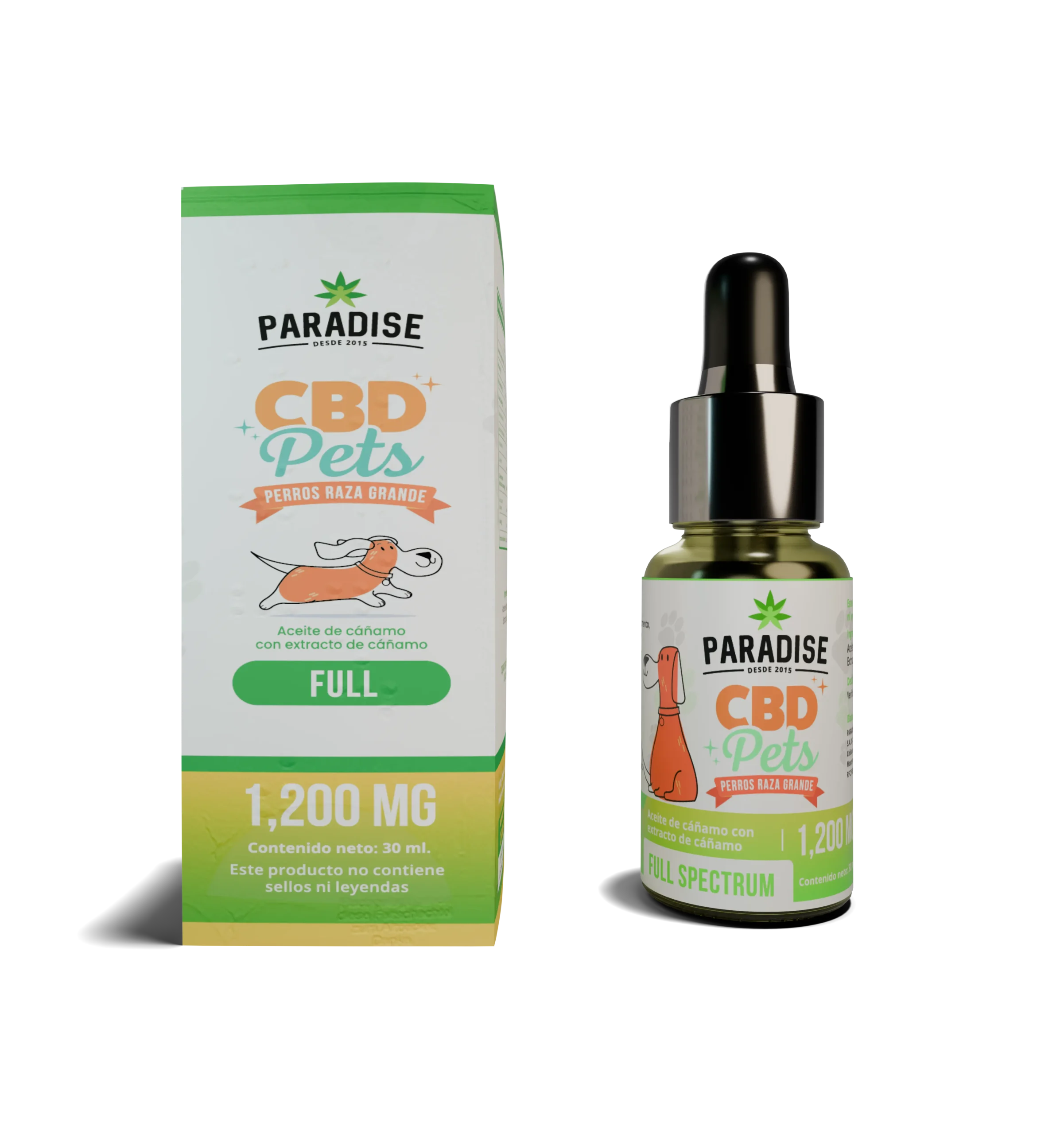 El Gotero Paradise PETS de 30 ml con 1200 mg de CBD para perros grandes es ideal para mejorar su bienestar de manera natural. Su dosificador permite una dosificación precisa, ayudando a reducir el estrés y mejorar la movilidad en perros grandes.